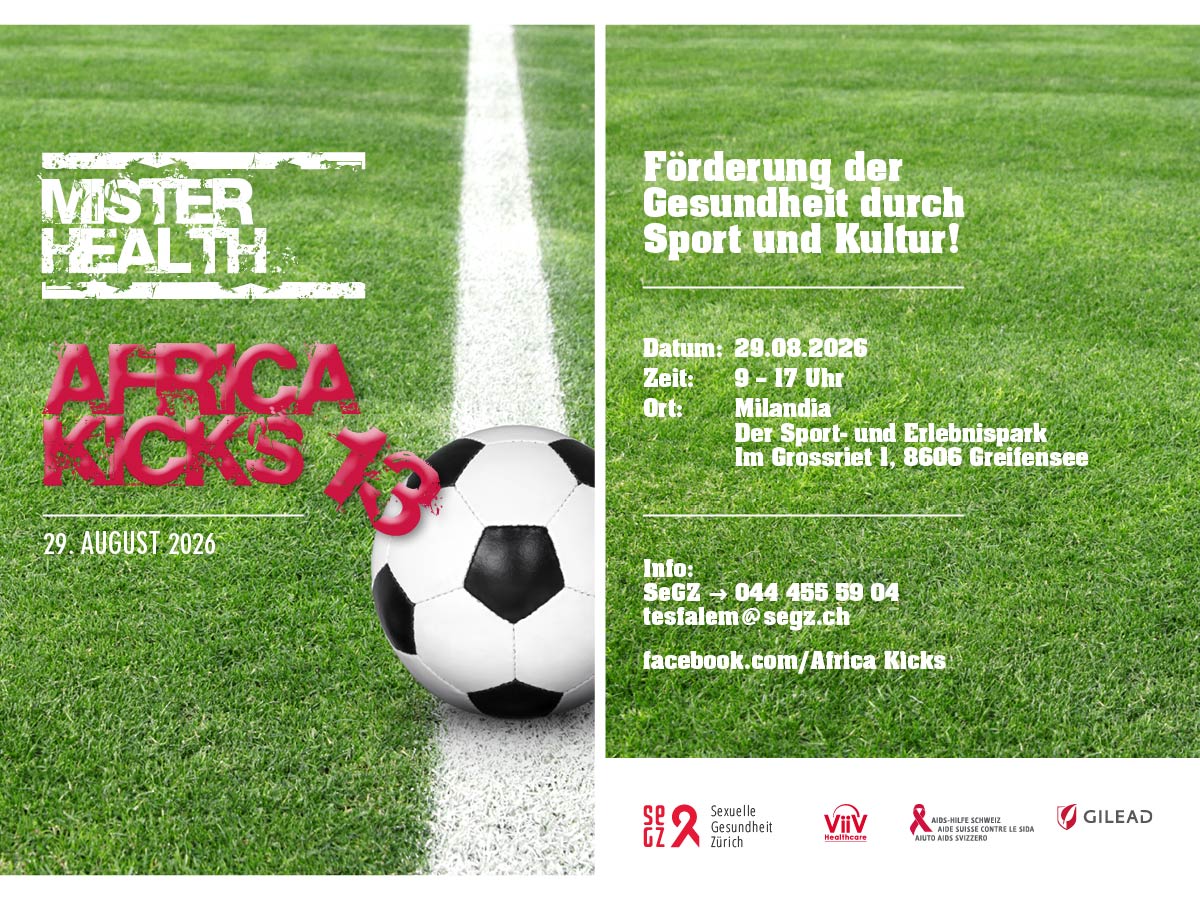 Auch in diesem Jahr organisiert die Sexuelle Gesundheit Zürich einen sportlichen Anlass, bei dem neben Fussball auch die Gesundheit im Mittelpunkt steht. Interessierte können jederzeit als Zuschauer*innen vorbeikommen. Vor Ort besteht zudem die Möglichkeit, sich kostenlos und anonym auf HIV sowie Hepatitis B und Hepatitis C testen zu lassen.